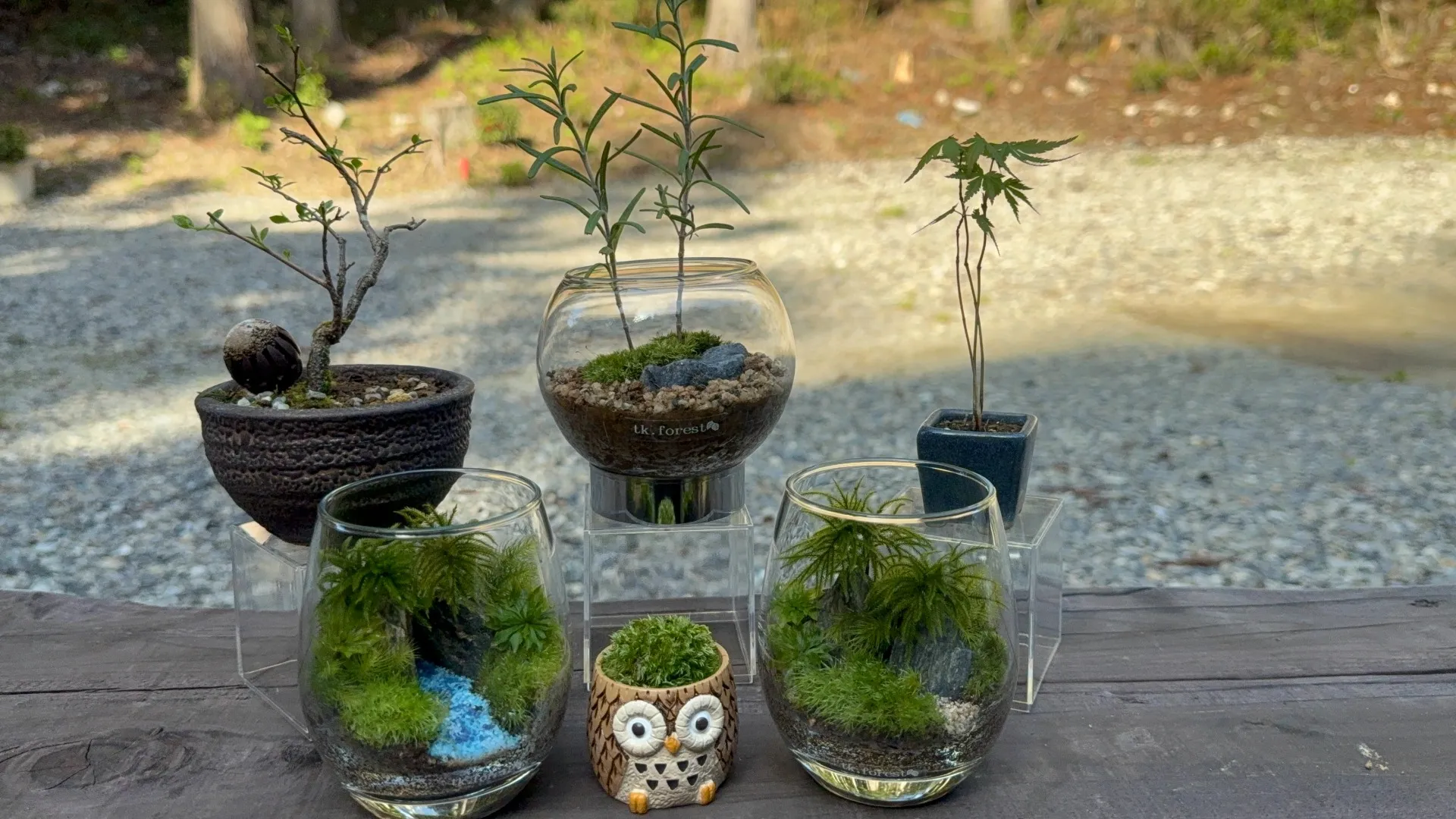 テラリウム・ミニ盆栽・苔玉・ミニ苔置物等の展示販売をいたします。